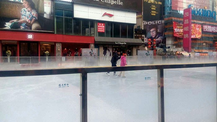 冰場(chǎng)位于大連商場(chǎng)門前的步行街
