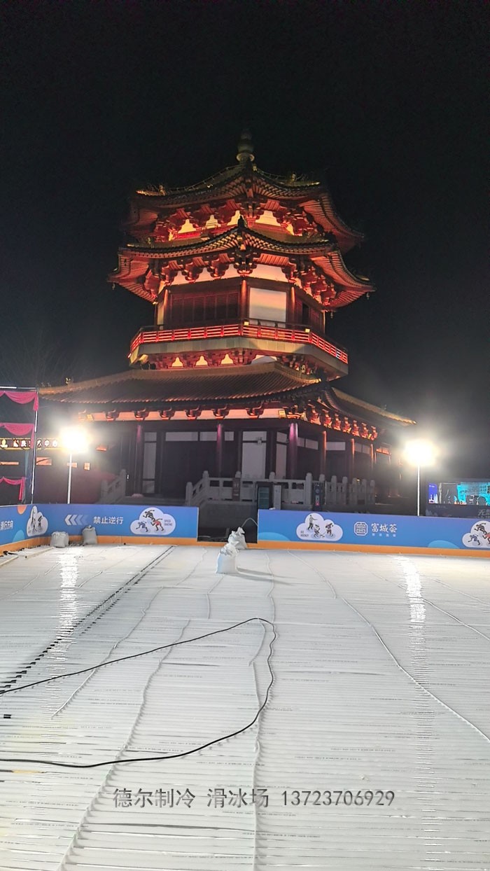 南京市溧水區(qū)無想水鎮(zhèn)富城薈室外滑冰場(chǎng),建設(shè)于2024年春節(jié)前的數(shù)九寒冷天氣,在春節(jié)到來前夕,及時(shí)開業(yè),為周邊市民提供了春節(jié)期間娛樂好項(xiàng)目。該溜冰場(chǎng)為室外人工真冰溜冰場(chǎng),由深圳市德爾制冷設(shè)備有限公司施工建造。此溜冰場(chǎng)為溧水區(qū)第一個(gè)室外真冰溜冰場(chǎng),它位于無想水鎮(zhèn)富城薈廣場(chǎng)核心區(qū),古代建筑風(fēng)貌的街景與現(xiàn)代城市的消費(fèi)形態(tài)相得益彰。夜晚燈光璀璨時(shí),映在冰面的燈光霓虹閃爍,與周邊街景構(gòu)成一幅色彩斑斕的夜色美景。