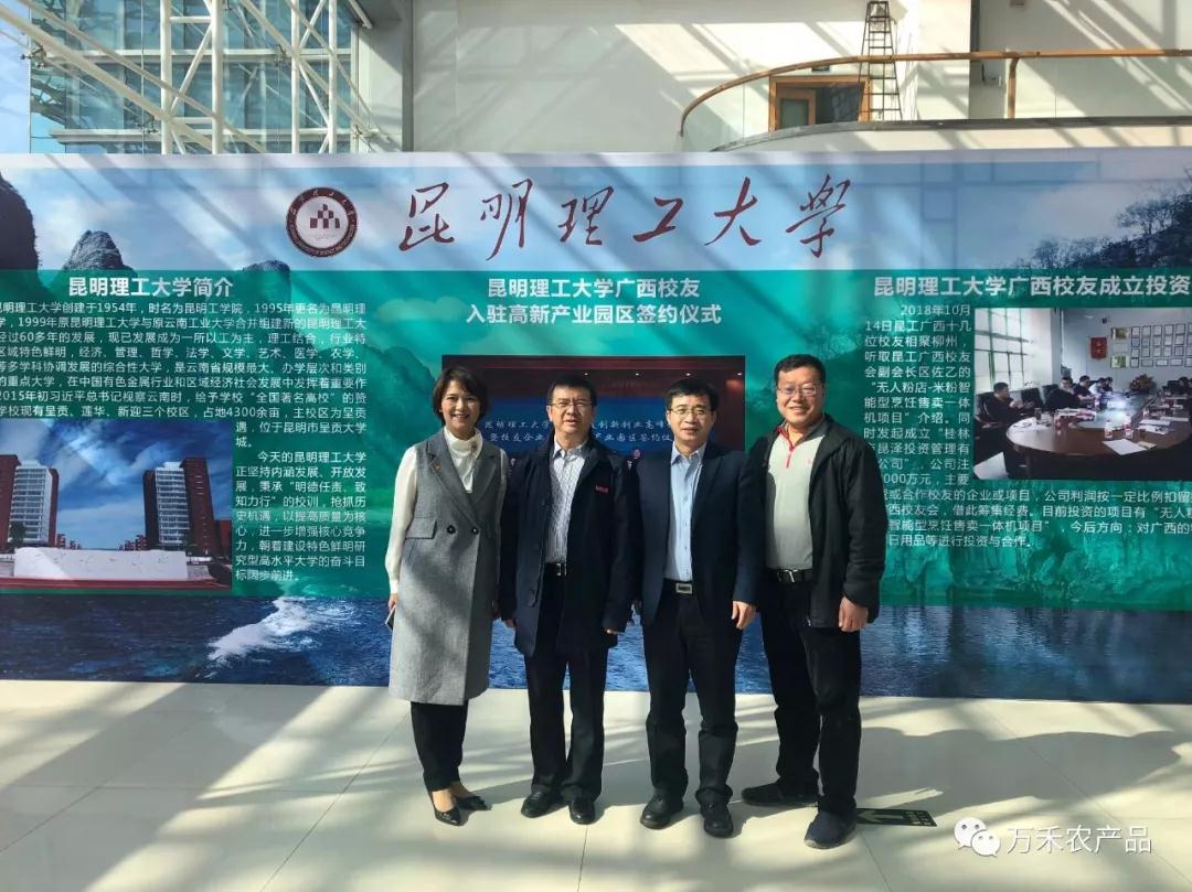 (圖為桂林市政府副市長樊新鴻、昆明理工大學副校長牛治亮、昆明理工大學工作與社會合作辦公室副主任杜青山、昆明理工大學廣西校友會會長崔萌佳在會場合影)