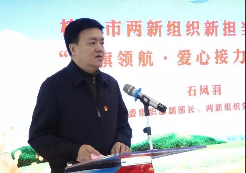 桂林市委組織部副部長(zhǎng)、兩新組織黨工委書(shū)記石鳳羽在啟動(dòng)儀式上致辭