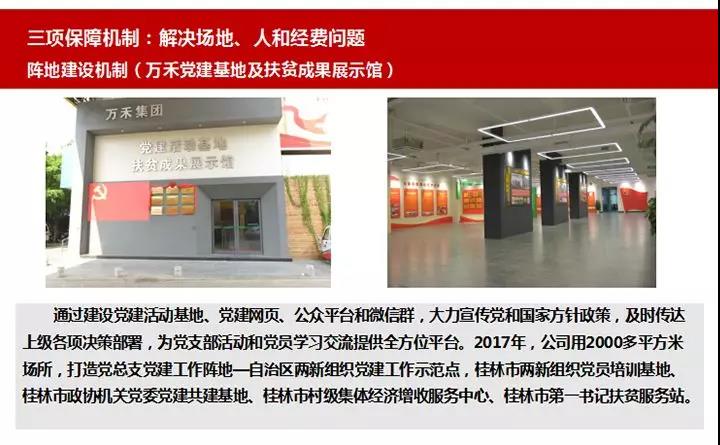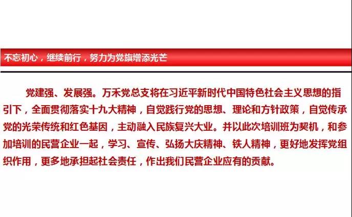 萬禾黨總支部作為桂林市兩新組織黨組織中的一員,在此次培訓班上的交流發(fā)言,是桂林市兩新組織黨建工作成果的重要體現(xiàn),是黨建工作的亮點展示,對于今后做好兩新組織黨建工作起到了積極作用。下一步桂林市將堅持貫徹落實習近平新時代中國特色社會主義思想和黨的十九大精神,把兩新組織特色黨建工作延伸拓展到更多企業(yè)、行業(yè)和街區(qū)中,更好地發(fā)揮黨組織作用,打造獨具桂林特色的兩新組織黨建工作名片!