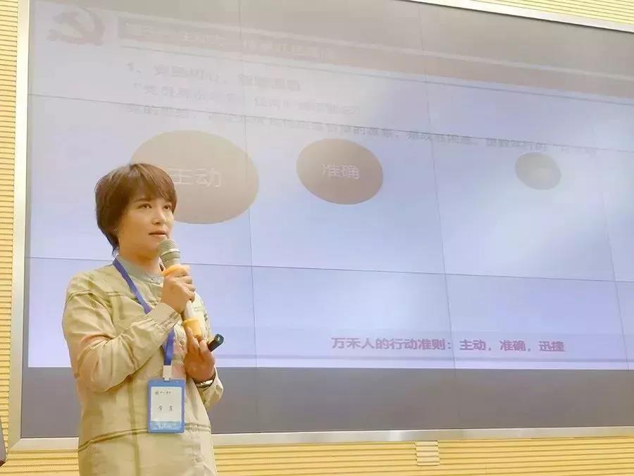 崔萌佳就《讓黨旗在創(chuàng)業(yè)路上高高飛揚》作交流發(fā)言,從理論與實踐統(tǒng)一、源于內(nèi)生動力·傳承紅色基因、“一四六三黨建工作法”等三個方面介紹了公司情況和黨建工作經(jīng)驗。