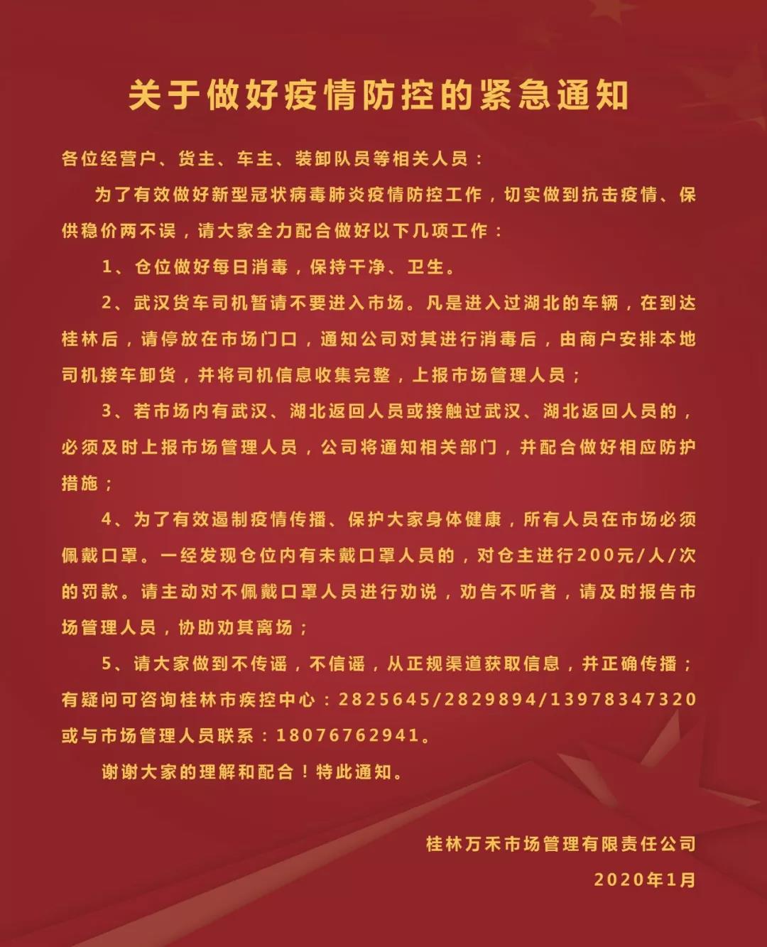 ▲萬禾市場管理有限公司發布《關于疫情防控的緊急通知》