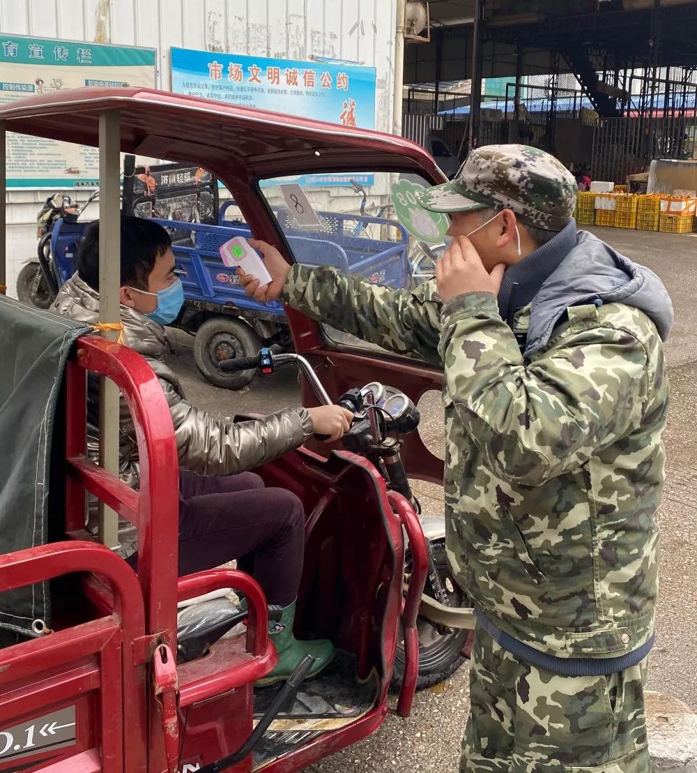 為實現“防輸入、防蔓延、防輸出”的疫情防控目標,萬禾公司、五里店市場從堵住源頭入手,對進出市場的每臺車輛進行仔細消毒,加強車輛出入管理,暫時限制疫區往來人員進入市場。在市場的每個入口安排工作人員使用測溫儀對進入市場人員檢測體溫,同時檢查其口罩佩戴情況,如有未佩戴口罩的,禁止其進入市場;已進入市場內部的,進行勸說,不聽勸說者,將其請離市場。