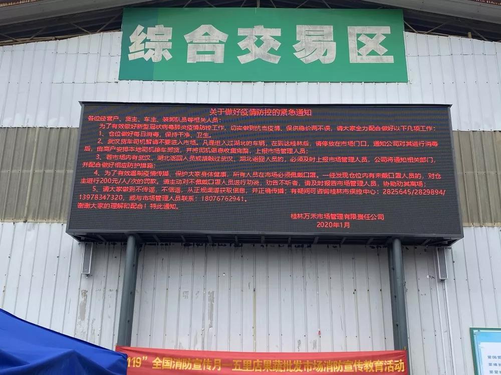 桂林五里店果蔬批發市場是湘桂黔三省交界最大的農產品交易平臺,農產品流通范圍覆蓋全國多個省市,人員車輛密集且流動性大,防疫任務艱巨。為保障抗疫期間農產品供應,避免疫情在市場內傳播,萬禾市場管理公司多措并舉,全力以赴。