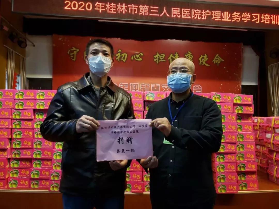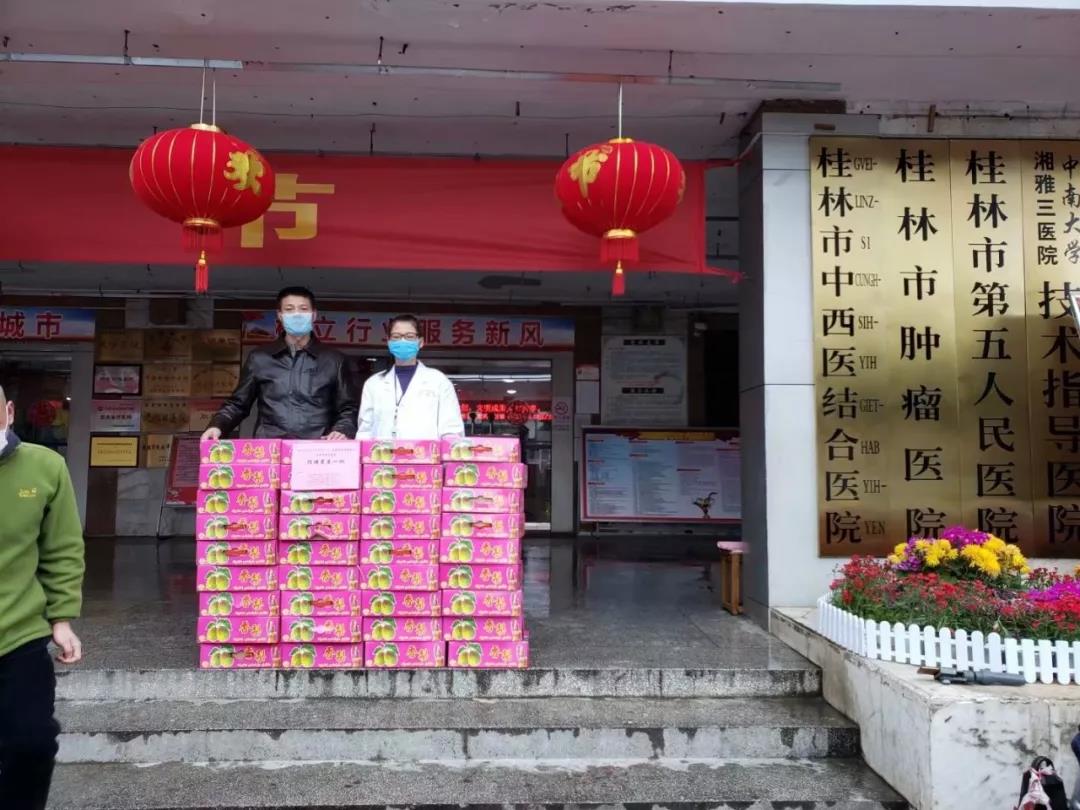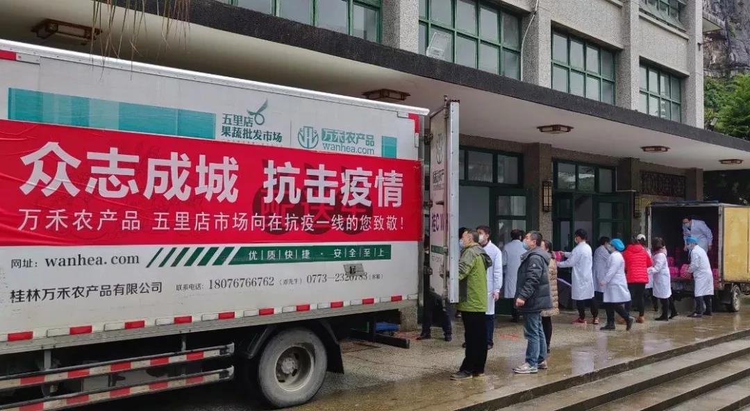萬禾農產品公司以及五里店果蔬批發市場的經營戶們主動擔起“抗疫情、保供應、穩物價”責任的同時,心系抗戰在一線的醫務和警務人員,1月30日向七星區衛建局和公安分局共捐贈了4000多只口罩,又自發組織向廣西桂林南溪山醫院、桂林市第三人民醫院、桂林市人民醫院、桂林市第二人民醫院、桂林市婦女兒童醫院、桂林市中醫院、桂林市中西醫結合醫院、桂林市疾控中心、桂林市公安局等奮斗在抗擊疫情一線的醫務和警務人員捐贈青棗、龍眼、香梨、油麥菜、黃瓜、大白菜、蘿卜、毛節瓜、生菜、紅蘿卜、辣椒、土豆、洋蔥等水果、蔬菜30多噸。