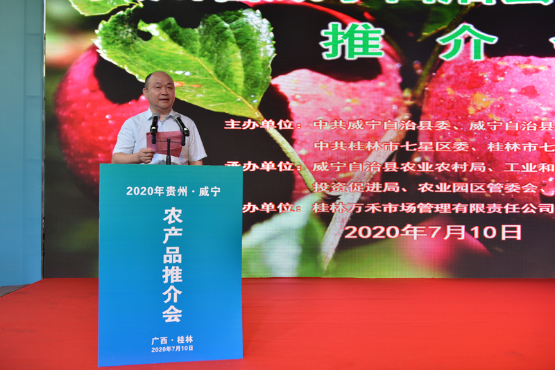 7月10日,由中共威寧自治縣委、威寧自治縣人民政府、中共桂林市七星區委、桂林市七星區人民政府主辦,威寧自治縣農業農村局、工業和信息化局、投資促進局、農業園區管委會、農投公司承辦,桂林萬禾市場管理有限責任公司協辦的2020年桂林“威寧農產品推介會”,在桂林五里店果蔬批發市場成功舉辦。