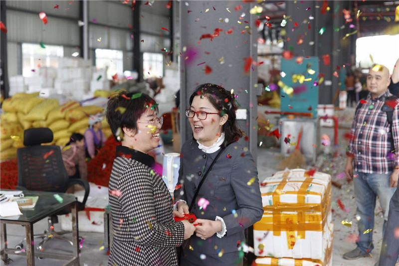 ▲ 萬禾公司總經(jīng)理崔萌佳為入駐新市場的商戶送上福利