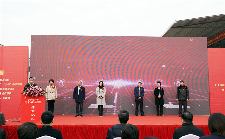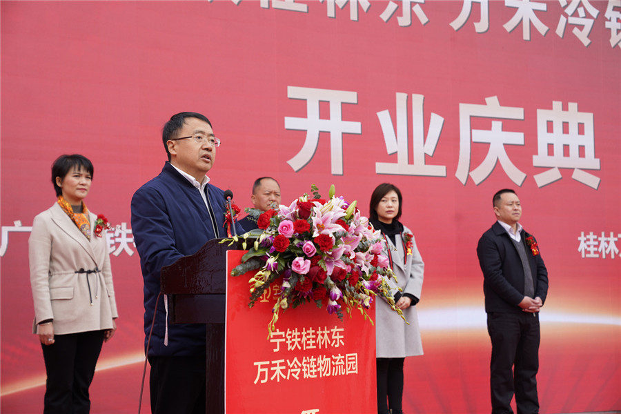 ▲桂林市政府副市長(zhǎng)鐘洪宣布:寧鐵桂林東萬禾冷鏈物流園正式開園