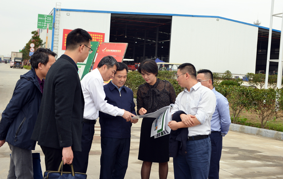 南寧鐵路局和廣西寧鐵物資工業有限公司一行領導首先來到寧鐵桂林東萬禾冷鏈物流園三期功能配套所在建設區域考察,伴隨著崔萌佳書記的細心講解,一座集配套板塊集中區、商業配套綜合體、生產配套板塊、交易中心于一體的大型現代化綜合物流園區仿佛已經呈現在大家面前。