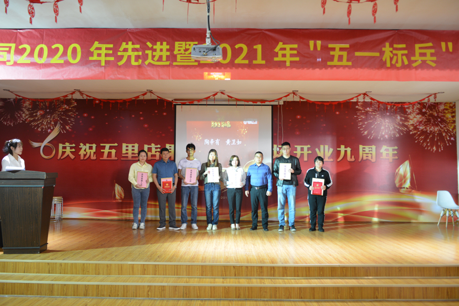 接著,公司領導上臺為受表彰的先進集體、先進個人和2021年“萬禾五一勞動標兵”頒獎。