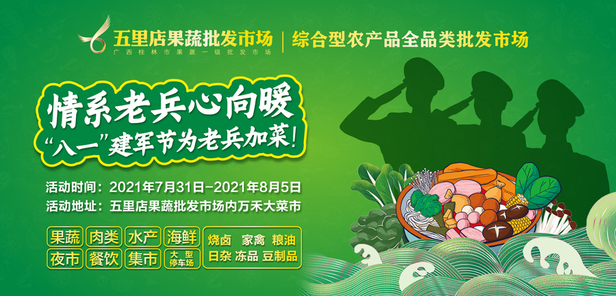 據了解,投身桂林農產品流通行業的退伍軍人多達數百人。其中,在桂林萬禾農產品有限公司及五里店果蔬批發市場工作的退伍軍人就有40余人。他們退伍不退志,繼承和發揚了人民軍隊忠誠、無畏、迅猛、擔當的優良作風,敢打硬仗、能打勝仗,成為公司業務及行業發展中的“排頭兵”和“頂梁柱”,在農產品流通的新戰場上無私奉獻、勇往直前。