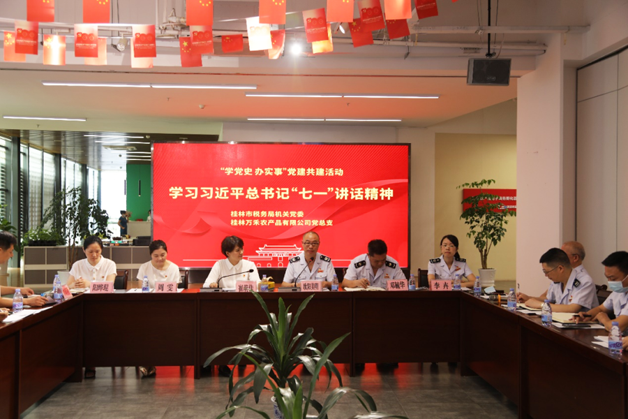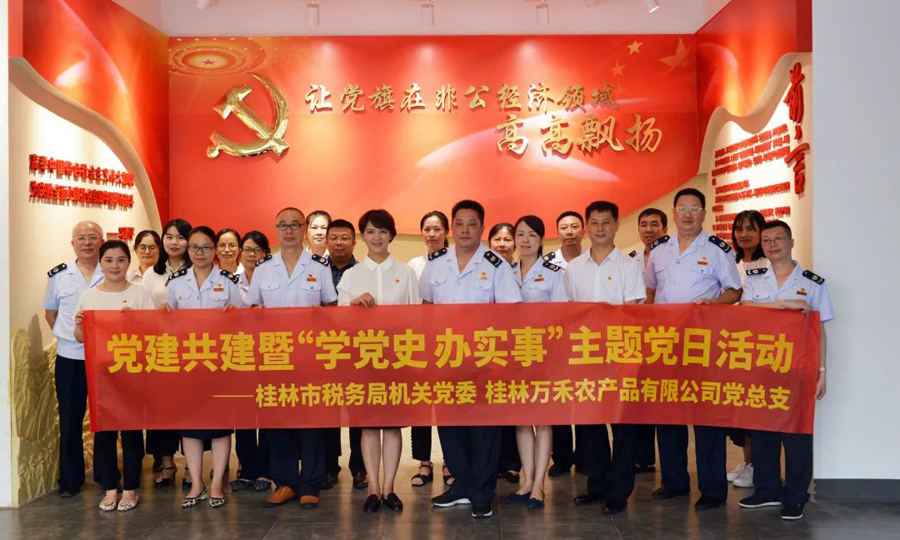 8月6日,桂林市稅務局機關黨委與桂林萬禾農產品有限公司黨總支共同開展了“稅企共建+共促發展”黨建共建活動,此次活動的主題是“學黨史 辦實事”雙方20多名黨員參加了活動。