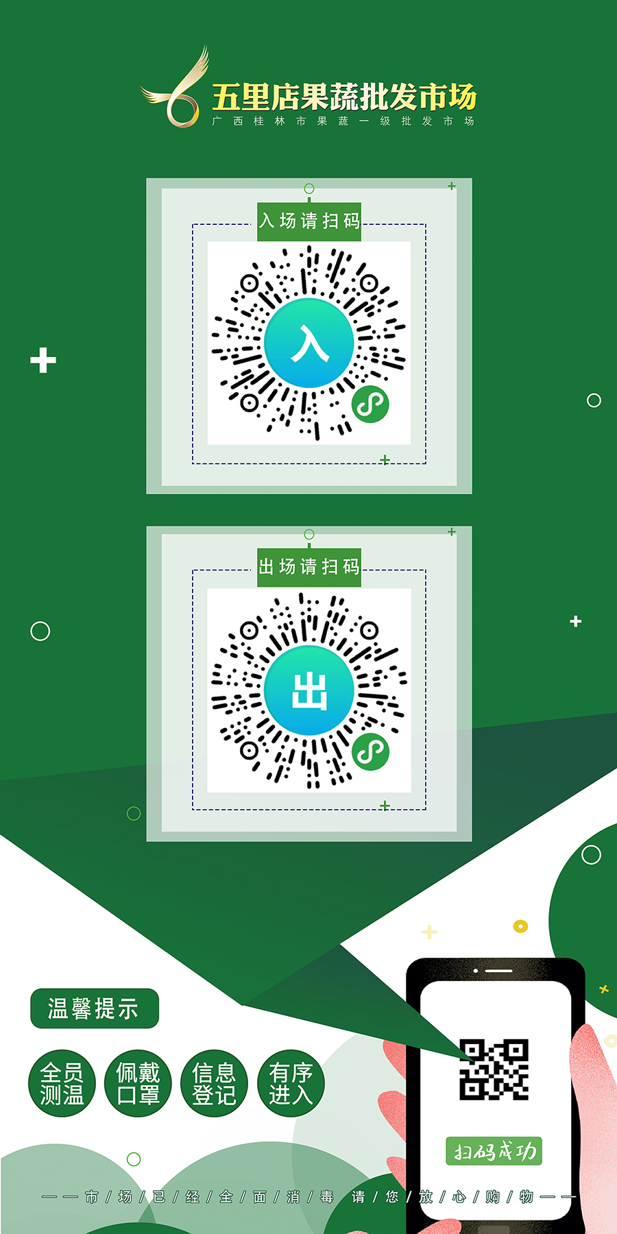 其他人員進場:進場需測量體溫,掃碼核驗健康碼、行程碼,經體溫檢測正常者才允許進入市場交易,進入市場必須全程佩戴口罩。