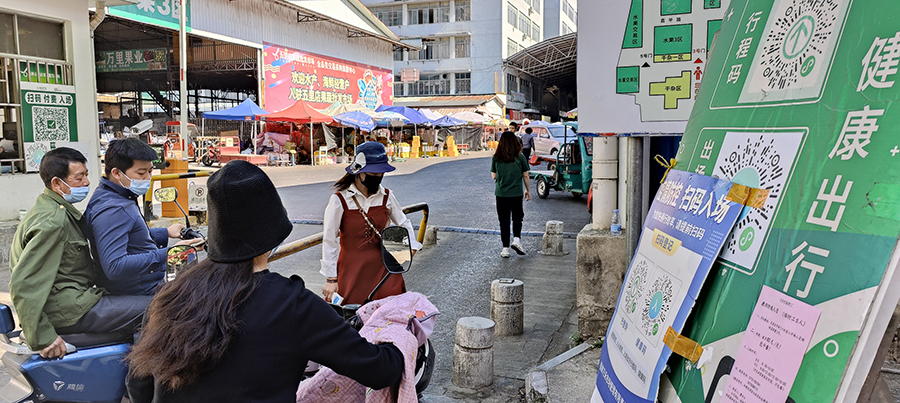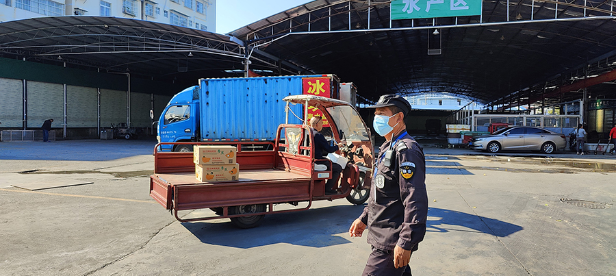對各主要經營場所進出人員嚴格執行測體溫、核驗健康碼、佩戴口罩,并設置口罩售賣點;進入市場的貨運車輛,應提前向市場報備,憑司乘人員48小時核酸檢測證明、行程碼、入場碼,測量體溫正常經過消毒后進入市場。進入市場后將車輛停放在指定卸貨區域,司乘人員不得下車,不得參加卸貨、銷售,全程不得與其他人員接觸,全程封閉式卸貨,筑牢抗擊疫情第一防線;各經營場所內部加強管控,安排人員不間斷對市場進行巡查,實施24小時值守制度;建立監管機制,加強在崗人員教育培訓,嚴格遵循國內疫區人員核驗處理辦法;定時對人多貨雜的交易區域和病毒隱匿高風險區域實施衛生清潔、病毒消殺,全力保障經營戶、群眾的身體健康。