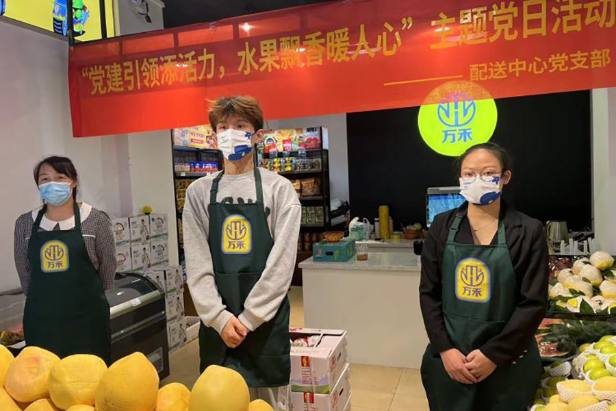 在萬禾集團黨總支的引領和指導下,萬禾貿易公司通過市場調查、踩點等各項前期工作,確定奧林匹克花園和金水灣萬禾水果專營店投入正式運營,并且秉承業務發展到哪里,黨旗就插到哪里的理念,發揚黨支部的戰斗堡壘作用和黨員先鋒模范作用,圍繞中心抓黨建,抓好黨建促業務,堅持黨建工作和業務工作目標同向、部署同步,工作同力,使二者在融合發展中相互促進,切實推動企業的高質量發展。