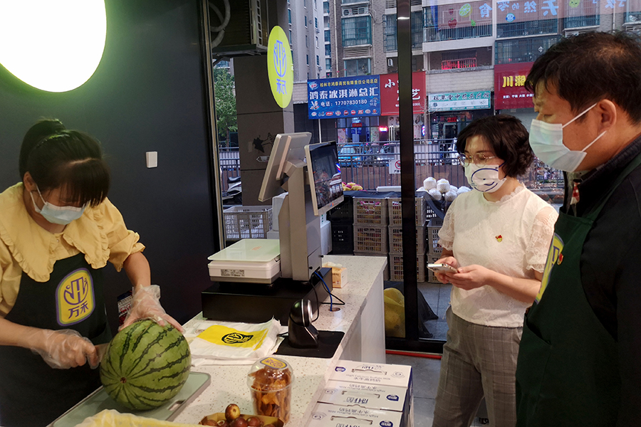 通過黨員現場服務顧客、切瓜果擺盤等手把手示范工作,提升員工服務認同感與主動性,以黨建引領,規范服務,進一步提升員工現場服務水平,讓顧客感受到更有溫度、更有鮮度的服務。