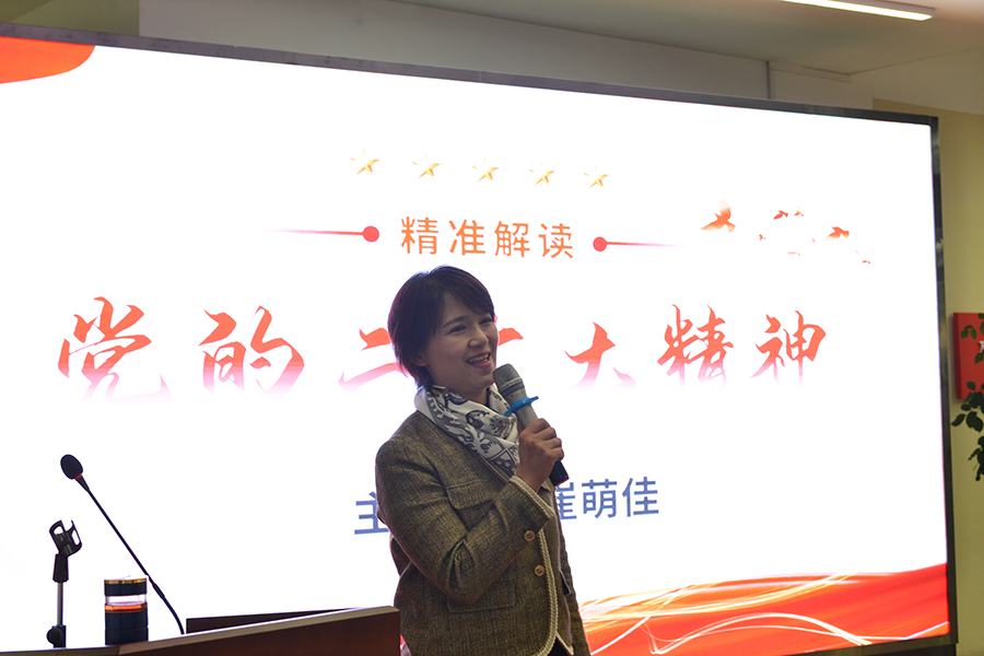 萬禾集團黨總支書記、總經理崔萌佳就黨的二十大會議主題、十年來的三件大事兩方面內容帶領大家學習黨的二十大會議精神: