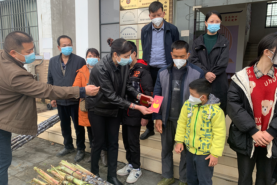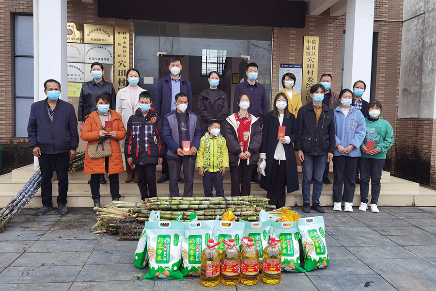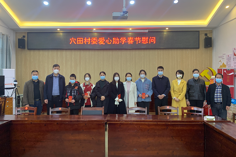 1月13日,在桂林市婦女聯合會的指導下,桂林市婦女聯合會黨組書記、主席陳薇薇,桂林市婦女聯合會副主席林玉潔,廣西桂林聚慧投資集團有限公司黨委專職副書記、工會主席蔣紅梅,萬禾集團黨總支副書記夏四初一行來到臨桂區中庸鎮穴田村,以走訪、座談等多種形式慰問自2022年6月以來建立結對幫扶、持續愛心助學的9戶困境學生家庭,為他們送去黨和政府、婦聯組織以及社會愛心企業的溫暖與關懷。