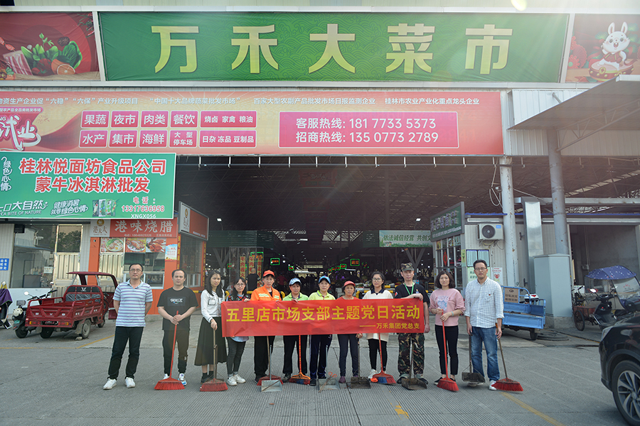 為給市場(chǎng)經(jīng)營(yíng)戶營(yíng)造干凈、整潔的經(jīng)營(yíng)環(huán)境,讓廣大市民過上歡樂、祥和的廣西特色民族節(jié)日,在三月三即將到來之際,萬禾集團(tuán)五里店市場(chǎng)支部組織黨員在五里店果蔬批發(fā)市場(chǎng)開展“美化環(huán)境,喜迎三月三”主題黨日活動(dòng),進(jìn)一步弘揚(yáng)新時(shí)代文明新風(fēng)和環(huán)保意識(shí)。