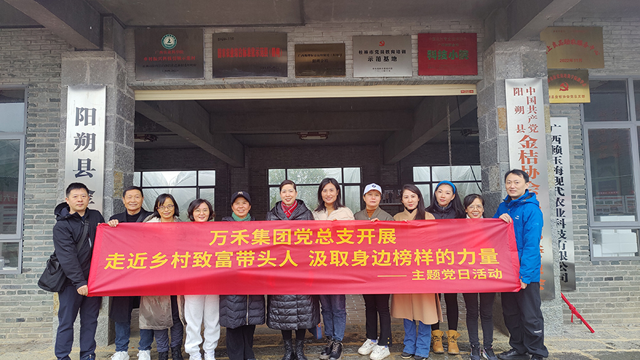 為深入學(xué)習(xí)貫徹黨的二十大精神和習(xí)近平新時(shí)代中國特色社會(huì)主義思想,營造學(xué)習(xí)榜樣、弘揚(yáng)正氣、傳遞先進(jìn)力量的濃厚氛圍,充分發(fā)揮先進(jìn)典型示范引領(lǐng)作用,1月6日,萬禾集團(tuán)黨總支組織黨員干部赴位于陽朔縣白沙鎮(zhèn)蕉芭林村的桂林市黨員教育培訓(xùn)示范基地開展“走近鄉(xiāng)村致富帶頭人,汲取身邊榜樣的力量”主題黨日活動(dòng),萬禾集團(tuán)副總經(jīng)理周雯、黨總支副書記夏四初參加活動(dòng)。