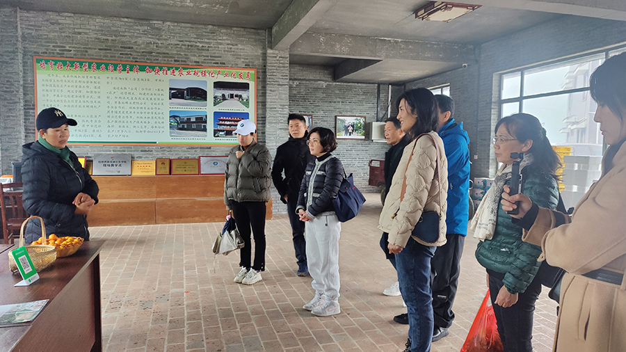 ▲黨員干部們認(rèn)真聆聽賴玉梅介紹金桔特色產(chǎn)業(yè)