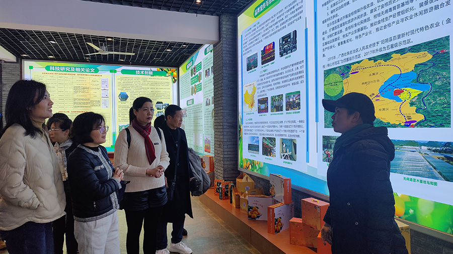 萬禾集團(tuán)黨員干部一行在致富帶頭人、全國農(nóng)業(yè)勞動(dòng)模范、蕉芭林村黨總支書記、黨的十九大代表賴玉梅帶領(lǐng)下,先后參觀了陽朔縣農(nóng)業(yè)產(chǎn)業(yè)扶貧培訓(xùn)基地和白沙鎮(zhèn)黨代表工作室,賴玉梅詳細(xì)講解了培訓(xùn)基地的基本情況、金桔標(biāo)準(zhǔn)化種植和深厚的歷史文化底蘊(yùn)以及自己在創(chuàng)業(yè)過程中的心路歷程,讓黨員干部們深切感受到賴玉梅身為一名山村共產(chǎn)黨員堅(jiān)持以身作則,將自己的致富經(jīng)驗(yàn)毫無保留地傳授給村民,帶領(lǐng)村民走向特色金桔產(chǎn)業(yè)的致富之路。