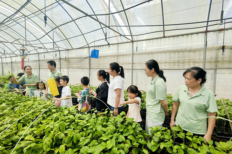 ▲綜合支部黨員與孩子們走進百香果苗培育中心