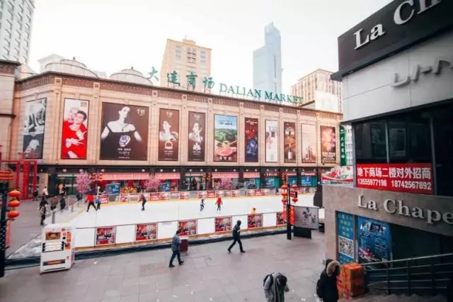 冰場(chǎng)位于大連商場(chǎng)門前的步行街