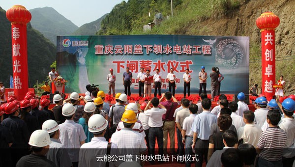 2012年8月10日,重慶云能投資興建的重慶市云陽縣蓋下壩水電站工程成功下閘蓄水。10時18分,隨著云陽縣委書記李洪義的一聲令下,巨型閘門穩(wěn)穩(wěn)落在導流洞進口閘槽底部后,下閘蓄水宣告圓滿成功。